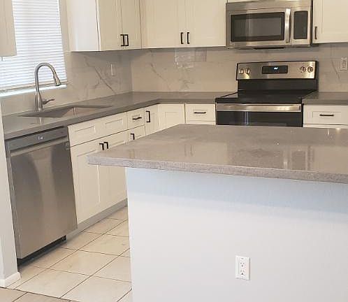 1200sf LARGE END TOWNHOUSE with a COVERED PATIO. Exquisitely remodeled! New Kitchen with high-end new cabinets, quartz countertop, undermount sink and center island. Brank new SS French door refrigerator (new handles are not installed yet), dish waster, stove and microwave. New bathrooms, new vanity, brand new mirror. New wash machine. New tile and new wood style flooring throughout. Ceiling fans in every room. Newer A/C unit. Screen door in each room. Beautiful Fireplace. new premium zero VOC paint. Community pool. This is the only unit in the complex that has covered patio, newly painted back yard fences. Two cover carports. Very safe and beautifully landscaped. We require 650+ credit score and 2.5X income. Available 1/1/2025 Tenant to pay all utilities. No smoking