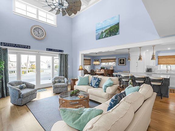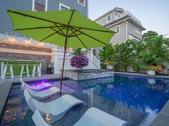 WATER VIEWS FROM THIS 3600 Sq ft , newer construction built in 2021. Furnished - less artwork and personals. No need to leave your home to charge your vehicle- EV CHARGER AT THE PROPERTY!! 36th Street family neighborhood, centrally located 6 bedroom, 6.5 bath home with 4-stop elevator, heated saltwater pool , wide plank hardwood floors, and high-end finishes thru out! Walking distance to town and the beach. Low maintenance exterior Hardy plank, standing seam rooflines, accented w/ silver stacked stone. Furnished, (less personals and artwork) 3600 sq. ft. of luxurious living space and plank hardwood floors, including custom millwork and SONOS AUDIO SYSTEM. Welcome to the sun lit foyer and venture thru this meticulously designed home with first floor family room that provides a generous secondary entertaining haven with enough seating for multiple families to enjoy a movie or the next sporting event! If you prefer, this flexible area accommodates your youngest vacationers, teens, or adults looking to enjoy their own space!! The Custom full-wall wet bar with a mixed-metals backsplash awash w/specialty lighting. The bar provides an under-counter beverage refrigerator, bar sink and plenty of built-in storage & display cabinetry for convenient pool side entertaining. The SOUTH facing sunlit views expand thru a wall of sliders that lead to a rear yard entertaining area lined with privacy 8’ tall Leyland Cyprus trees and planters creating a picturesque backdrop to the “Cambridge” stone pool deck. Whether lounging on the sun shelf within the “blue glass” bordered pool and jacuzzi or sharing outdoor entertainment area located in the SOUTH facing sun-bathed rear yard, it's only the first of the many GEMS you will find upon exploring this water view Oasis. The 1st floor provides a second primary w/ensuite and seamless glass shower door. Second bedroom on this level is sure to be the kids favorite with "custom L- shaped bunk beds and INTEGRATED STORAGE DRAWERS w/ personal lighting and shelf space creating their own sanctuary. FULL SIZE bottom bunk and SINGLE top bunk allow for those extra surprise guests visits! Upon entering the second floor, your eyes will be drawn to the vastness of the Great Room with its 2-story floor to ceiling silver and white stone fireplace perfectly topped 2 stories above framed by the third floor balcony, and crowned by the 2-tone Coffered ceiling 16' above . Kitchen and dining room are an exciting mix of beach meets contemporary with its nautical sconces above the 10’ island to the pierced silver chandelier that washes the walls with patterns of light .The chef's kitchen features KAHLE’S custom cabinetry w/ inset style and Thermador appliances including Thermidor SS DOUBLE WALL OVENS, ” Stainless 36 GAS 6 burner cooktop dishwasher , and 36” French door, “paneled” refrigerator with custom hinge to allow for seamless integration w/ “inset” style cabinetry. Custom imported tile medallion highlights the backsplash that frames the 36” Stainless GAS 6 burner cooktop. The impressive granite center island accommodates the Scotsman “wet cube” ice maker, dual -zone wine refrigerator, microwave drawer, and custom pull out island spice cabinets.