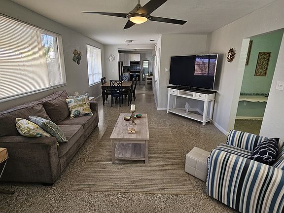 Beach Paradise Awaits! Discover the perfect coastal retreat in the heart of St. Pete Beach, just a short walk to the pristine sugar sands and turquoise waters of the Gulf of Mexico! This fully furnished charming pet friendly beach bungalow rents monthly, with 6 month or annual lease options. The home is fully stocked and equipped for long term stays with everything you will need to be comfortable and a spacious fenced private yard. Come enjoy the area in this delightful home and make memories that will last a lifetime. The fully furnished home has 3 bedrooms and 2 bathrooms, master with king size bed and in suite bathroom, 2nd bedroom has two single beds and 3rd bedroom has a queen bed, sleeps 6 comfortably. The fenced private yard has a covered area with chairs, sun deck with lounge chairs and a BBQ grill. There is a dedicated work space with desk and extra monitor so you can work from the beach or have a comfortable spot to surf the web. The garage has a washer/dryer, beach equipment and bikes. Home has Wifi and streaming cable service, all bedrooms and living room have TVs. Off street parking for up to 6 cars with room for a boat, RV or jet skis in the private driveway. Amenities onsite include free washer/dryer, dishwasher, microwave, stove, full size fridge, BBQ Grill, beach chairs, cooler, beach cart, towels, and linens. St Pete Beach is located just 15 minutes from downtown St Petersburg and 30 minutes the airport. Pets under 50lbs are welcome, cats must be fixed. Nearby you will also find public pickleball, basketball, shuffleboard and picnic areas. Annual fixed rate, 6 month or 30 day min monthly term options, furnished or unfinished options are available. We are pet friendly with approval! This property rents seasonally for $3,800 - $5.995 monthly with all utilities, cable, internet, trash and lawn service. Peak season is January through March at a monthly rate of $5,995/mo, non-peak rate is $4,500/mo. All rates under 6 month term require a 13% occupancy tax. This property rents seasonally and annually, seasonal rates and terms vary. Please inquire for current availability, seasonal rates and terms based on length of stay. Accepting bookings with a 30 day min stay up to 1 year lease. A 13% local occupancy taxes for stays under 6 months is required. This property rents for $4,500 - $5,995 monthly includes - utilities, cable, internet, trash and lawn service. Peak season is January through March at a monthly rate of $5,995/month. All stays less than 6 months will require a 13% local occupancy tax. This property rents seasonally and annually, seasonal and annual rates and terms vary. Please inquire for current availability, rates and terms based on length of stay. Home is fully furnished and all utilities included. Local occupancy tax is collected based on duration of stay and rent amount. Water, electric, high speed internet, cable TV service, grounds maintenance included in price. $1500 security deposit collected upon occupancy and fully refundable. This property rents seasonally and annually, seasonal rates and terms vary. Inquire for current availability, seasonal rates and terms. Monthly rate includes all utilities, occupancy taxes and fees. This property rents seasonally and seasonal rates and terms vary. $350 refundable pet deposit per stay. 50% deposit required upon booking, remaining balance due 14 days prior to reservation, cancel 30 days out for a full refund and 50% refund if you cancel with 14 days of reservations. Reservations made under 14 days in advance require full payment upon booking. We accept PayPal (+3% if you use Goods & Services), Zelle, Personal Check for payment.