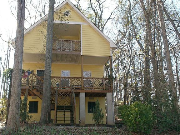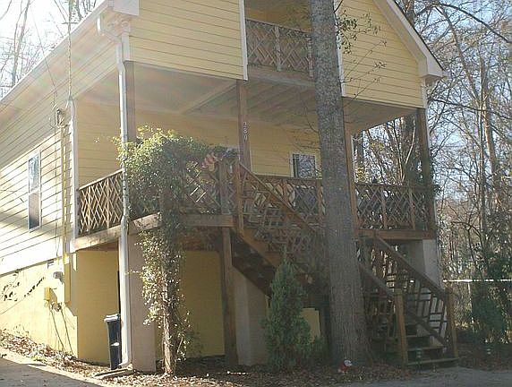 In-town3BR/2BA craftsman style house with bonus room downstairs and an office upstairs. House has 2-levels of front porches (one off the vaulted-ceiling master) and a fenced-in backyard with fire pit, shed, and outdoor dining area. House has hardwood/slate/tile floors, granite counters, updated bathrooms, 2 walk-in closets in master, and lots of custom features including built-in shelves in the upstairs office. Under-porch storage area for bikes, kayaks, tools, and more!