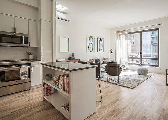 Starting at $3319.05 per month. Great one bedroom apartment with open L-shaped kitchen with stainless steel appliances including an induction range and Caesarstone countertops as well as a floating island/eating bar. Enjoy an in-unit washer dryer, wood floors throughout, and multiple closets. The Caesura is a LEED certified green luxury rental community located at the intersection of Ashland and Lafayette streets in the heart of the Brooklyn Cultural District. Residents enjoy amenity spaces designed for holistic well-being to sustain body, mind, and spirit including a light filled 11th floor fitness center, conservatory with double-height glass-walled garden, rooftop lounge with outdoor kitchen, lounge, gameroom, access to the Caesura "Common Goods" lending library, bike room with tool station and laundry room. Prices and incentives subject to change. Smoking allowed:No
