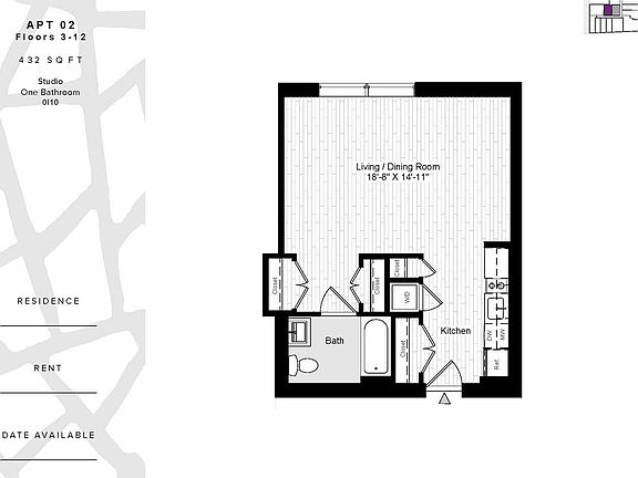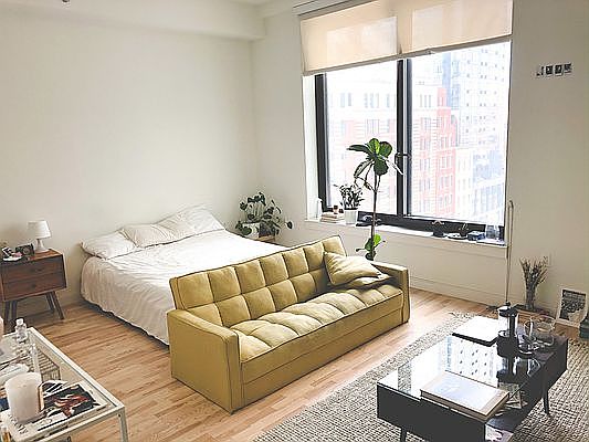 Starting at $2870.93 per month. *Price shown is for a 2-year lease term. This well designed studio apartment includes an in-unit washer/dryer, a modern gourmet kitchen with stainless steel appliances including an induction cooktop and Caesarstone quartz countertops, multiple closets, wood floors, 9' ceilings, and over-sized windows. The Caesura is a LEED certified green luxury rental community located at the intersection of Ashland and Lafayette streets in the heart of the Brooklyn Cultural District. Residents enjoy amenity spaces designed for holistic well-being to sustain body, mind, and spirit including a light filled 11th floor fitness center, conservatory with double-height glass-walled garden, rooftop lounge with outdoor kitchen, lounge, gameroom, access to the Caesura "Common Goods" lending library, bike room with tool station and laundry room. Prices and incentives subject to change. Floor plans and photos may be of a representative unit. Smoking allowed:No