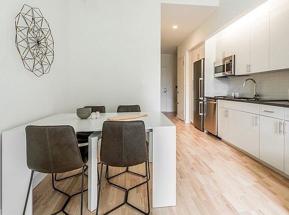 Starting at $2758.36 Move right in to this fully furnished studio that provides everything you need to live well - and nothing you don't. Apartment comes complete with multipurpose, transforming furniture including sofa wall bed, media cabinets, and convertible dining tables, a 49" smart tv, complimentary Wifi/Cable and access to the Caesura "Common Goods" lending library. This beautifully appointed apartment also features an in-unit w/d, good closets, wood floors, over-sized windows, stainless steel appliances including an induction cooktop, and Caesarstone quartz countertops. The Caesura is a boutique luxury rental community located at the intersection of Ashland and Lafayette streets in the heart of the Brooklyn Cultural District. Residents enjoy amenity spaces designed for holistic well-being to sustain body, mind, and spirit including a light filled 11th floor fitness center, conservatory with double-height glass-walled garden, rooftop lounge with outdoor kitchen, lounge, gameroom, and bike room.