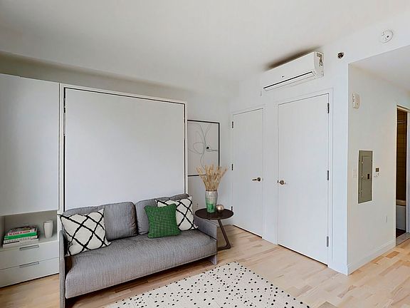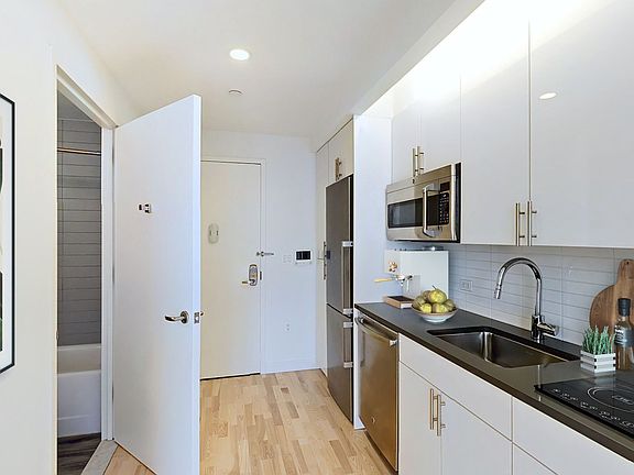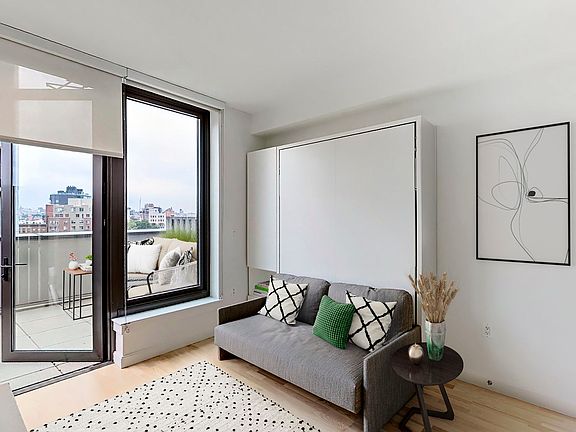 Starting at $3302.21 Move-in Ready FURNISHED, well designed studio apartment with stainless steel appliances including an induction range and Caesarstone countertops, wood floors, over-sized windows, 9' ceilings, and multiple closets. The Caesura is a LEED certified green luxury rental community located at the intersection of Ashland and Lafayette streets in the heart of the Brooklyn Cultural District. Residents enjoy amenity spaces designed for holistic well-being to sustain body, mind, and spirit including a light filled 11th floor fitness center, conservatory with double-height glass-walled garden, rooftop lounge with outdoor kitchen, lounge, gameroom, access to the Caesura "Common Goods" lending library, bike room with tool station and laundry room. Prices and incentives subject to change.