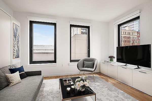 Starting at $2906.47 per month. Move right in to this fully furnished studio that provides everything you need to live well - and nothing you don't. Apartment comes complete with multipurpose, transforming furniture including sofa wall bed, media cabinets, and convertible dining tables, a 49" smart tv, and access to the Caesura "Common Goods" lending library. This beautifully appointed apartment also features wood floors, triple exposures, and a gourmet kitchen with stainless steel appliances including an induction cooktop, and Caesarstone quartz countertops. The Caesura is a boutique luxury rental community located at the intersection of Ashland and Lafayette streets in the heart of the Brooklyn Cultural District. Residents enjoy amenity spaces designed for holistic well-being to sustain body, mind, and spirit including a light filled 11th floor fitness center, conservatory with double-height glass-walled garden, rooftop lounge with outdoor kitchen, lounge, gameroom, and laundry room. Smoking allowed:No