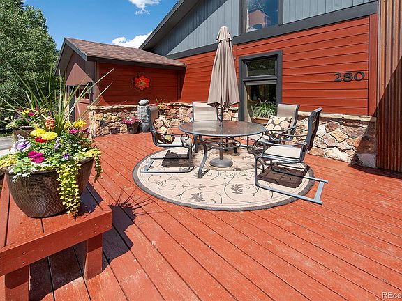 The idyllic setting in Frisco. This charming home basks in sun at the end of a quiet cul de sac. Distinctive landscaping welcomes guests and beckons you to embrace nature and tranquility. The surrounding yard holds a private hot tub and fenced area for a happy dog. Character, utility and storage abound. A dedicated office, family room on the lower level, three plus bedrooms, three renovated baths with electric infloor heat and a smartly appointed kitchen round out the usual wish list.