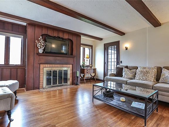 Picture perfect Brighton Tudor, loaded with charm! The fireplaced Living room features beamed ceiling, built-in bookcases & leaded glass doors to both the front entry & the enclosed porch. Formal Dining room with built-in corner hutch & wainscoting. Beautifully updated Kitchen with quartz counters, subway tile backsplash & stainless steel appliances - leads to the mudroom with access to the front entry, side yard & a sliding barn door to the basement. Upstairs, you'll find 3 bedrooms & a full bath, including the Master with 2 closets. The attic is ideal for an office or playroom with an additional 155+ sq ft of finished space, while the basement Rec room & 2nd full bath add another 175 sq ft! Gleaming hardwood floors & thermal pane windows throughout; water heater in 2014; Roof in 2007.