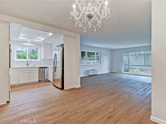 CADIZ model with NO STEPS! Wood-look vinyl flooring, double pane windows & smooth ceilings. Tray ceiling in kitchen with recessed lighting. Quartz counter tops. Washer/Dryer combo machine in bathroom. Close to carport. Great location, close to Clubhouse 1 and the more than 800-seat theater Performing Arts Center with a small post office in the parking lot. Enjoy all the amenities & life within the gates of Laguna Woods Village resort-like community. Amenities: 2 Golf Courses, 5 Clubhouses, 5 Pools, 3 Fitness Centers, Performing Arts Center (PAC), Tennis, PC & MAC labs, Wood Shop, Garden Centers, Equestrian Center, Bocce, Pickle Ball, Arts (Pottery, Glass, Lapidary, Jewelry, Painting, Sewing), 280+ Clubs (including one of the largest Bridge Clubs in US), RV parking area and so much more. Experience SoCal’s Mediterranean-like climate. Minutes to Laguna Beach & the ocean.