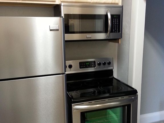 Immaculately remodeled apartment in a lovely location. Real oak flooring, floor-to-ceiling tiled bathroom, custom maple kitchen cabinets, granite counter tops, stainless appliances - refrigerator, range, microwave, dishwasher. Beautiful ceiling fans/lights in living room and main bedroom. Extra room with loft; can be used as additional bedroom. Air conditioner. Gas is included in rent. On site coin-op washer and dryer. Parking in the rear of building (1 vehicle). This truly is a must see! Tenant is responsible for electricity and cable/internet. Landlord pays for gas, landscaping maintenance and snow removal, sewer and water.
