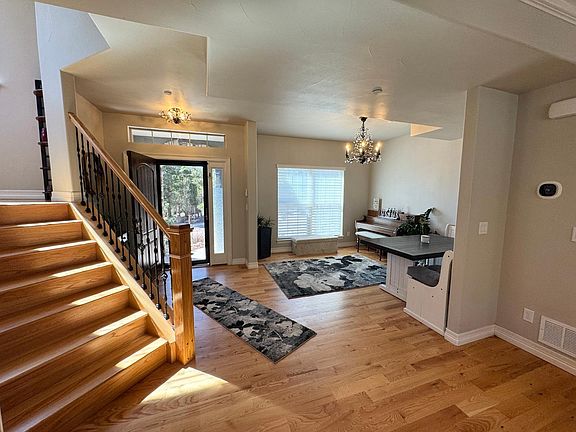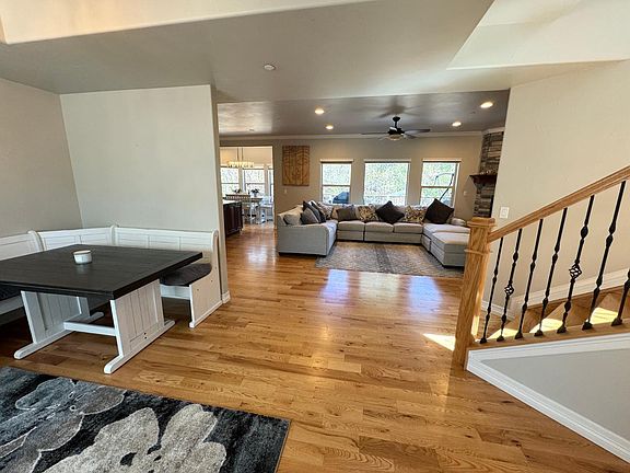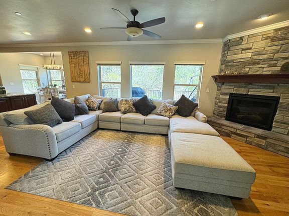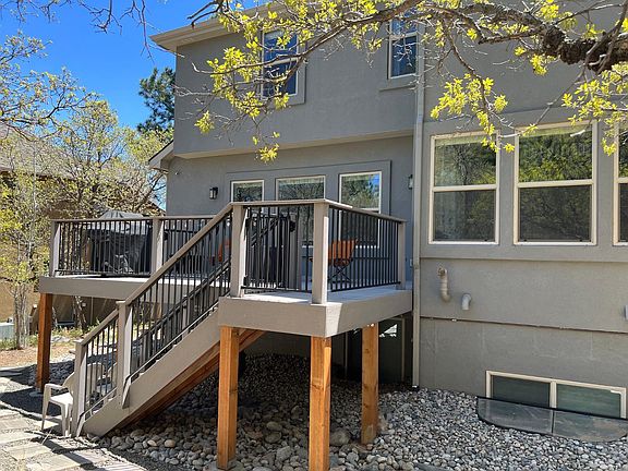 Stunning 5 bedroom executive stucco/stone home in desirable Cheyenne Mountain (school district 12)! Main level gourmet kitchen w GE Profile SS, granite tile countertops, large pantry, and gorgeous cherry cabinets with walk out to a large rear composite deck looking out into a forested backyard! Hardwood flooring on main level and stairs; spacious living room w/ a stone gas fireplace to enjoy on those chilly winter nights. The upstairs has a total of 4 bedrooms, where a 2nd bedroom connects to a jack and Jill bathroom that also links to a 3rd bedroom both offering separate vanities and walk-in closets and 3 total bathrooms. The ample basement level has the 5th bedroom, 3/4 bath, large family room, and plenty of storage space. Beautifully landscaped! Radon mitigation, fire suppression system, security system, ecobee thermostats, humidifier, dual hot water heaters. 3 car attached garage. Close to military installations and shopping! (Storage shed in backyard is excluded for tenant use). Tenants pay for the internet, gas, electric, water, and sewer. No smoking at the property.