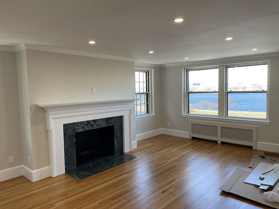 Brand New Renovation! Waterside Beacon, This beautiful corner 2 bed 2 bath unit has been totally Renovated with Bosch appliances, stone countertops. Large corner living room featuring fireplace and custom lighting. in elevator building with on-site super and common roof deck. Kitchen, living, dining area provide an open living pattern. Great river views from within this unit, overlooking the Charles River and the Cambridge skyline. Custom lighting Hi-end kitchen complete w/ plenty of storage, granite countertops, perfect for entertaining. Hardwood floors throughout. Master bedroom with en-suite bath and two closets. Generously sized second bedroom. with two closets, In-Unit Laundry as well as common laundry in building. Heat & Hot water are included in he rent. Still under construction, call for pictures.