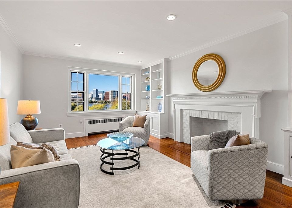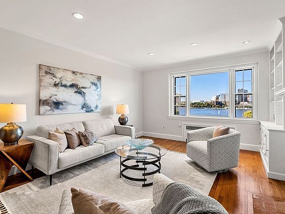 Sophisticated WATER-VIEW home WITH A FRESH NEW LOOK! This stunning condo offers an open-concept kitchen, living & dining area with breathtaking views of the Charles River & Cambridge skyline. Take the elevator to floor 6; enter the chef-inspired kitchen, ideal for entertaining w/a sprawling island, high-end appliances, ample cabinetry, &elegant granite countertops. Custom built-ins add both charm & generous storage throughout the main living space. Wake up to sweeping views in the front-facing primary bedroom, complete with two closets, a cozy reading nook, and a private en-suite bath. The second bedroom is spacious &bright, also with an en-suite bath and sleek glass shower. A beautifully maintained common rooftop deck offers a front-row seat to the river and city beyond. Enjoy unbeatable proximity to the Esplanade, Newbury St, Boston Common, Copley Square, and the Prudential Center. Convenient access to mass transit, elevator building, on-site super. Sorry, no dogs permitted.
