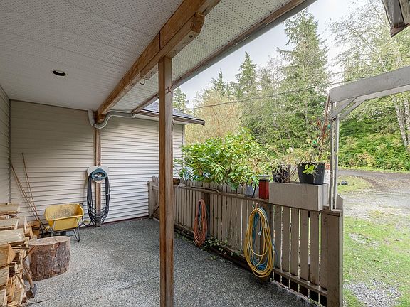 Charming West Coast Half Duplex nestled on a quiet street in Bamfield, gateway to Barkley Sound at the heart of Pacific Rim National Park, home to rich and abundant marine life making for world class fishing, diving, kayaking, boating and hiking. This spacious 2-bedroom, 2-bath half duplex offers over 1,500 sq. ft. of comfortable coastal living. Enjoy 9-foot ceilings throughout, soaring 16-foot vaulted ceilings in the great room, and the cozy warmth of a woodstove. The kitchen features rich wood cabinetry, a functional island, and French doors leading to a covered patio—perfect for year-round enjoyment. A bright sunroom/family room floods the space with natural light, while the primary bedroom includes a walk-in closet and a 4-piece ensuite. Outside, the large yard offers gardens, ample parking, an attached garage, and a detached wired shop. Experience true west coast living on your doorstep. All measurements approximate, verify if important.