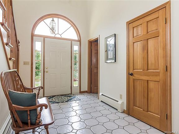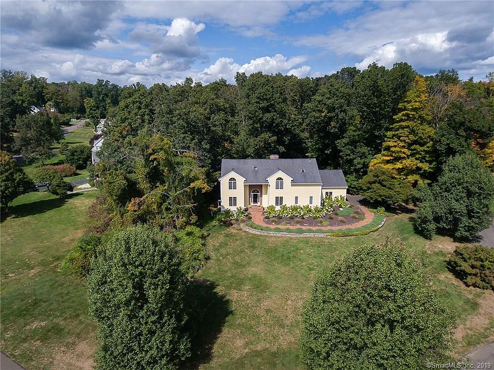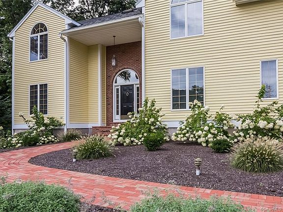 Contemporary Flair is the designing concept for this spacious colonial home. Sited beautifully the slight up slope to the front yard gives a majestic feel. The landscaped garden flanks the broad front brick walk. The level rear yard has a large ground level deck and nice lawn area. The paved driveway gives good access to the two car attached garage and has generous extra parking. Upon entry to the house the two story foyer gives a promise of light and air. The front of the house is for the formal rooms: big formal dining room and larger living room with wood burning fireplace. The rear of the house is where everyone hangs out. The cathedral ceilings span the kitchen, casual dining area, and family room. The kitchen has a center island, granite counters and the bonus of a separate serving area with wet bar and wine rack. An active cook will be happy in this kitchen! Adjacent is the casual eating area which opens to the family room with another fireplace. There is easy access to the large deck and yard. A real plus in this house is the first floor master bedroom - a spacious room with a large walk-in closet and newly remodeled master bath - very luxurious! The stair to the 2nd floor is from the front foyer at the upper landing is a balcony overlooks the foyer and the casual dining area. There are three bedrooms and a bath. All second floor bedrooms have cathedral ceilings and special windows. Two bedrooms are very large. House is serviced by a Kohler whole house generator. Rounding out the offering is a large, dry, basement. Great storage with potential to be finished as a bonus space, workshop, or game room. Maintenance conveniences, like leafguard gutters make maintenance easy. This home is part of the desirable Bluff View Estates community. There is easy access to the town lake/beach, the elementary school with community playground and about 12 minutes to downtown. It is easy to get to Middletown, Hartford, and New Haven. The location is great for getting to Yale, Wesleyan and Quinnipiac Universities.