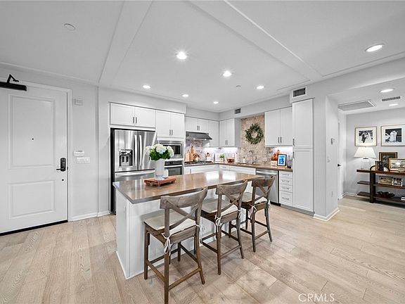 Welcome to 280 Buena Vida Drive, Unit 203, a highly upgraded condominium in the sought-after Buena Vida 55+ gated community within the master-planned La Floresta community in Brea. Designed to promote a multigenerational lifestyle, La Floresta blends all age neighborhoods with resort style amenities, creating a vibrant and inclusive environment. This stunning open concept residence boasts real wood flooring throughout, quartz countertops, custom backsplash, and elegant shaker cabinets, creating a sleek and modern aesthetic. The spacious kitchen is a chef’s dream, featuring high end appliances, ample storage, and designer finishes. The open concept living and dining area is perfect for both relaxing and entertaining, featuring a spacious layout, recessed lighting, and large windows that flood the space with natural light. Enjoy seamless indoor-outdoor living with access to your own private balcony, perfect for morning coffee or evening relaxation. The primary suite provides a tranquil retreat with a spa-like en-suite bathroom featuring his and her sinks, a custom walk-in shower, and premium finishes. The nicely appointed second bedroom offers comfort and versatility. Additionally, there is a den/office with a custom barn door provides extra space that could be used as a third bedroom, home office, or creative space. Designed with accessibility in mind, this unit features ADA compliant doorways for ease of movement, and the building includes a convenient semi private elevator for effortless access. Convenience is key with an indoor laundry room for added functionality. Community Center: Features a pool, Jacuzzi, billiards room, banquet hall, gym, and pickleball courts, offering endless opportunities for recreation and socializing. Enjoy meals with family and friends at the community’s dedicated outdoor BBQ and picnic spaces, featuring comfortable seating and a well-designed grilling area for social gatherings. Premium Location in the Heart of Brea: Close to daily conveniences, shopping, and dining. Near major freeways for easy commuting. Minutes from Brea Mall, Whole Foods, and popular attractions. Experience the perfect blend of modern luxury and schedule your tour today!
