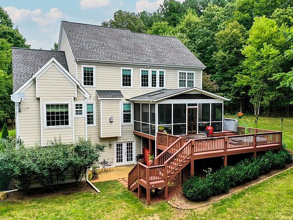 Experience a main-level living, private wooded retreat just 15 minutes from Charlottesville with high speed internet! The light- filled foyer leads to a home office with glass French doors for privacy and a formal dining room with wainscoting and tray ceiling. The open floor plan features a great room with soaring vaulted ceilings remote-controlled blinds and excellent light that is open to the gourmet kitchen with maple cabinets, solid surface counters, stainless appliances and MORE! Enjoy the outdoors on the screened porch and large deck with hot tub. Roast marshmallows at the fire pit and collect your own eggs from the fully automated chicken coop! You'll love the first floor owners suite with tray ceiling, dual custom walk-in closets, soaking tub with nature views and separate shower. Second level features three additional bedrooms and a full bathroom. The huge, partially finished walk-out basement with finished full bathroom offers endless organized storage space and room to grow! Home features partial generator, new windows, water softener and so much more!