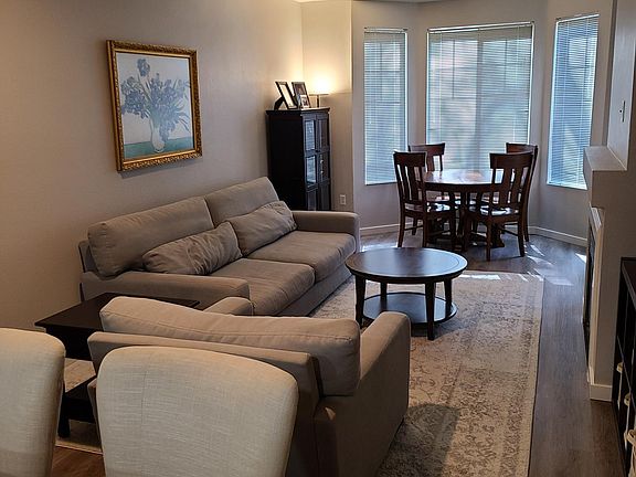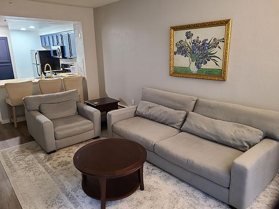 Located at the back of the complex the unit is quiet and has a hill-side view. Easy commute and central location to SF, Oakland, Berkeley, Walnut Creek. FULLY FURNISHED Transbay bus stop outside of complex Recently renovated New Samsung kitchen appliances Washer/dryer included Butcher block countertop with bar seating included All dishes, mugs, plates, pots, pans, etc included 2 TVS (mounted in living room and on shelf in bedroom) Z Gallerie couch and oversized chair Dining table that seats 4 Queen sized bed Washer/dryer in unit Water/garbage included Gated community Balcony facing the hillside where you can watch wildlife walk by Locked storage closet outside on balcony 1 dedicated parking space inside the building Gated community Community has a gym/pool/jacuzzi No smoking No pets Deposit includes the furnishing deposit Minimum 1 year lease Water/Trash included in the rent Renter pays PGE/internet (and other utilities as desired)