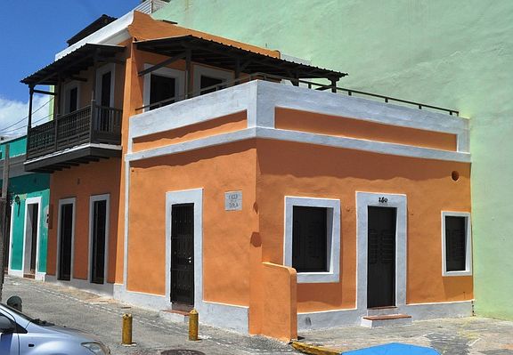 Colonial Style House or commercial property of 2 stories with 1,470 square ft. in Norzagaray st. corner with Tanca. Can be used as a bar or restaurant and has the gas connection. wonderful terrace overlooking the Atlantic Ocean. Has tax exemption. e ventilation and light. Has many doors and windows.