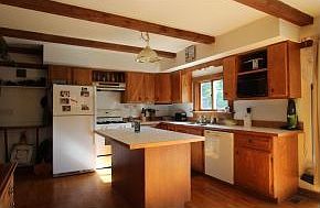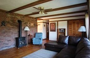 Country Ranch on 2 acres with basement accessory apartment! Oak Hardwood Floors thru Living room to Kitchen, brick hearth & gas fireplace centered in open floor plan with lots of natural woodwork and ceiling beams. Large bathroom with double vanity and additional door to master bedroom. Attached oversized garage with storage above and basement walkup. Walkout basement on apartment side with lots of windows.