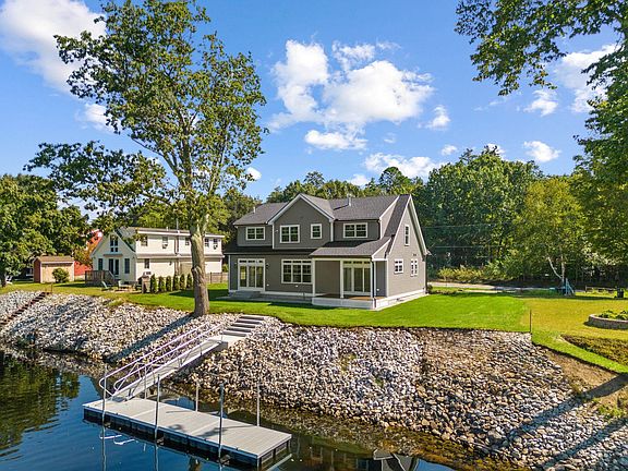 Enjoy panoramic water views from all of the primary rooms in this newly constructed custom-built waterfront home. The home’s handsome exterior draws your attention and opening the front door will offer you a direct unobstructed view of the Merrimack. For those that love to entertain the beautiful kitchen has been outfitted with a 6-burner gas range, farmer’s sink, quartz countertops and a butler’s pantry. The great room’s gas fireplace and stone surround will make those cooler nights warm and cozy. The home also features a large 1st floor primary bedroom, ensuite bath w/heated floors, spacious walk-in closet, and a covered porch. The 1st floor laundry, 1/2 bath, utility room and the 3-car garage complete the ground floor. The 2nd floor offers two additional bedrooms, a bonus area (office/den) and another full bath. The exterior is complimented with an irrigation system, granite posts & steps, permeable walkway & patio pavers, and an aluminum floating dock. Numerous additional features have been incorporated into this high-quality home and they have been detailed on the Seller’s Disclosure – Additional Features document. Note that working from home can be made easy with access to gig-speed fiber broadband. Highway access, restaurants and shopping are just minutes away. When you’re not boating, swimming or kayaking, feel free to walk/bike the Manchester Heritage Trail starting from Chauncey Ave’s cul-de-sac. A great opportunity for vacation living in the heart of Manchester!