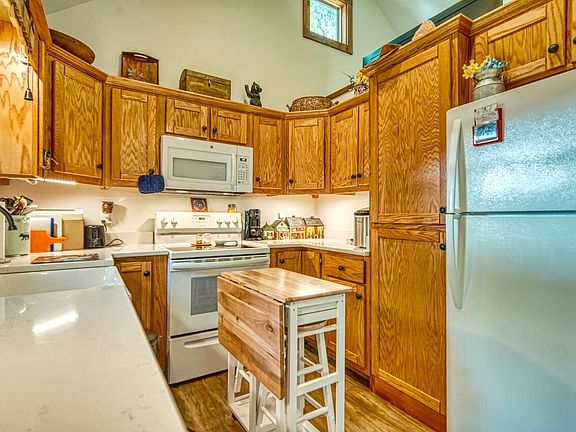 Located in the quiet community of Chimney Ridge, this 1BR/1BA 400 sqft tiny is the perfect place for full time living or to escape the hustle & bustle of city life. Interior features include vaulted ceiling, marble style corian counters, farmhouse sink, lots of cabinet storage in the kitchen, & living room area w/ loft storage space. Bedroom has barn door style entrance & built in storage. Bathroom features laundry area & walkin shower. Outside you will find an easy access ramp, open porch for grilling & screened in porch for relaxing. There is also a detached 10x12 storage building. Heat/air is controlled by a mini split system. Yearly fees of $660 cover community septic, yard maintenance, trash & roads. Built from the ground up, this home is financeable!