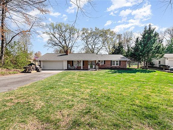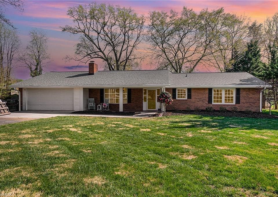 Back on Market at no fault of the sellers. This beautifully updated classic brick ranch offers comfort, style & convenience. The open floor plan features a spacious living area centered around a charming brick fireplace, perfect for cozy gatherings. The bright and sunny kitchen boasts granite countertops, stainless steel appliances, & a versatile island with extra seating, seamlessly connecting to the dining area. The well-appointed laundry room provides extra storage & cabinetry with matching granite countertop. Both bathrooms have been tastefully updated with tile floors, granite countertops,& double sinks,& the primary bath showcases a sleek tiled shower. The 2nd bedroom also features a walk-in closet for added storage. Step outside to enjoy the expansive backyard, complete with privacy fence & patio,ideal for outdoor entertaining & relaxation. Located in a convenient location with county taxes,this home is near shopping, schools, & downtown Kernersville.