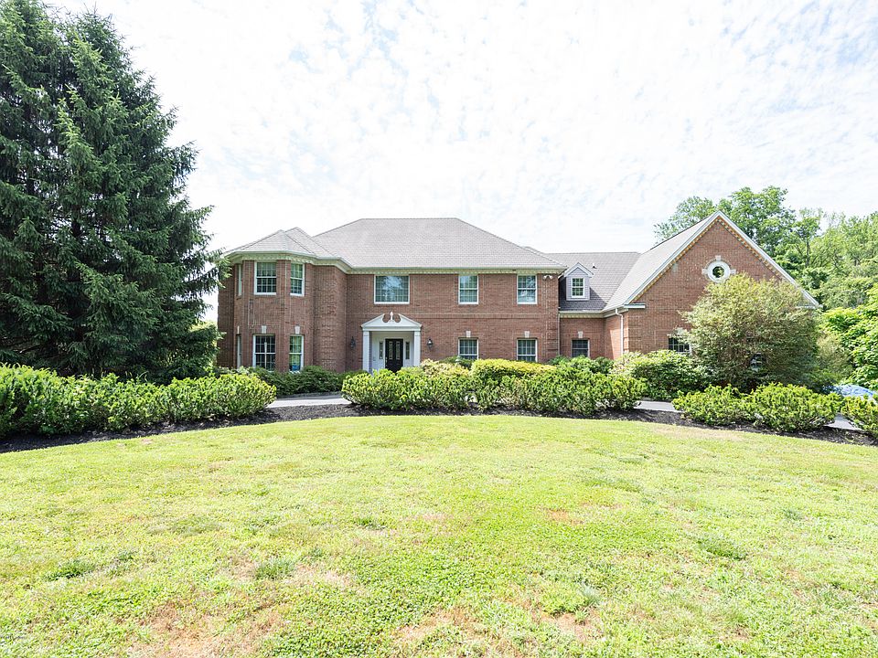 Set on 3 acres in Middletown, this Georgian style brick-front colonial is high-lighted by Belgium block curbed circular driveway. Entering one immediately appreciates the grand foyer w/gallery above. The main level offers a lrg DR w/tray ceiling a dramatic 2-story GR w/FP, an elegant sized LR, & Library/5th bdrm w/private bath. The expansive light-filled Kit which features a gorgeous terra cotta flr, granite counters & top of the line appliances, while opening to the rear entertainment size deck. The 2nd level is home to 4 bdrms, includes a MSuite w/volume ceiling. Mbath features wirlpool tub, marble vanity & sep tile shower. 4th bdrm is designed as 2nd master w/adjacent siting/exercise rm. LL includes a home theater, plenty of storage & elevator that goes to all 3 levels. Ideally located!