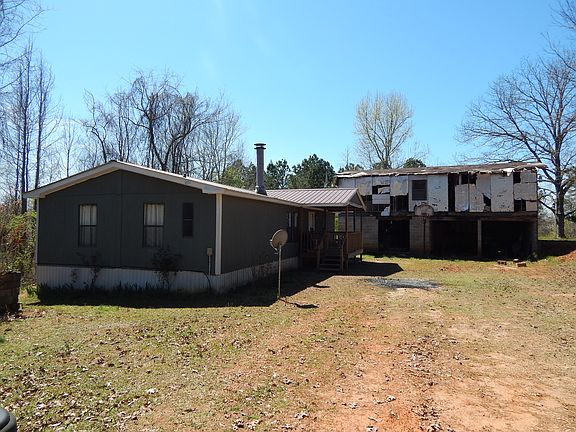 Three bedroom, two bath double wide 24x50 modular home with a metal roof, covered front porch and back deck.It is situated on a 4.428 acre lot with an additional 6.445 acres directly across the road. The total acreage is 10.873. The mobile home is 28 years old and is in average liveable condition. The toilets and electric hot water heater are new. The refrigerator, stove, washer and dryer are included. It has central heat and air. The stove and heater are propane. It also has a wood burning fireplace,county Water and a bored well The home place has several fruit bearing trees and bushes and mature hard woods. It's location is very private yet only four miles to Wedowee. There is an additional four bedroom two bath house that was dried in and never finished next to it. The roof has failed and would have to be replaced as well as some of the decking.The foundation and most of the wall framing is sound and could be rebuilt.