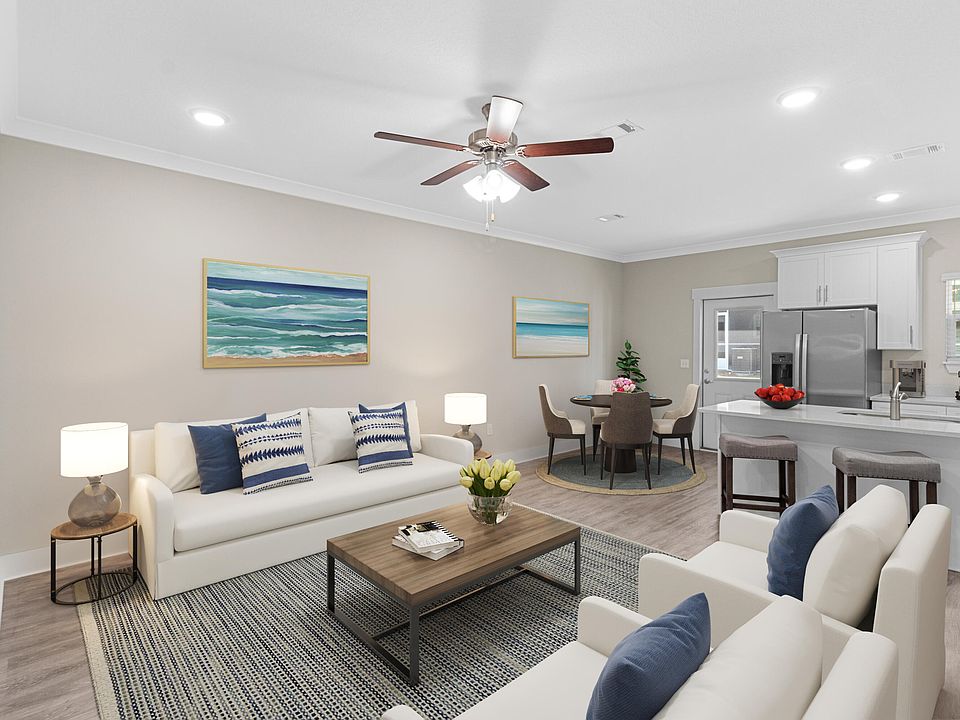 Seller is motivated - no need to wait on new construction! Open-concept living flows seamlessly to a screened porch perfect for morning coffee or evening downtime. Split floorplan with all bedrooms upstairs, including the primary en suite with double vanities and walk-in closet. This unit stands apart with its garage, green space positioning, and peaceful setting deeper in the community. Quality finishes include quartz countertops, LVP flooring throughout (no carpet!), metal roof, Moen fixtures, and ample storage. Resort-style amenities including a POOL, playground, basketball, and pickleball courts. Washer/dryer included. Located under 1/2 mile from Freeport Elementary with easy access to Hwy 20 and Hwy 331 in one of Florida's fastest-growing areas. Reach out for the video tour! The screened enclosed porch offers a great place to enjoy morning coffee or unwind in the evening while staying shaded and bug-free. Other highlights include double vanities and l-shaped walk-in closet in the primary suite, a pocket door in the downstairs powder room, ceiling fans and lights in each bedroom, architectural trim, faux wood blinds on all windows, and generous storage throughout the home. The washer and dryer are included, and the home is finished with Moen satin nickel fixtures, quartz countertops, LVP floors throughout (no carpet!), and a durable metal roof. Located under half a mile from Freeport Elementary with easy access to both Highway 20 and Highway 331, this property offers everyday convenience in one of Florida's fastest-growing towns. Make sure to ask your agent for a link to the video tour!