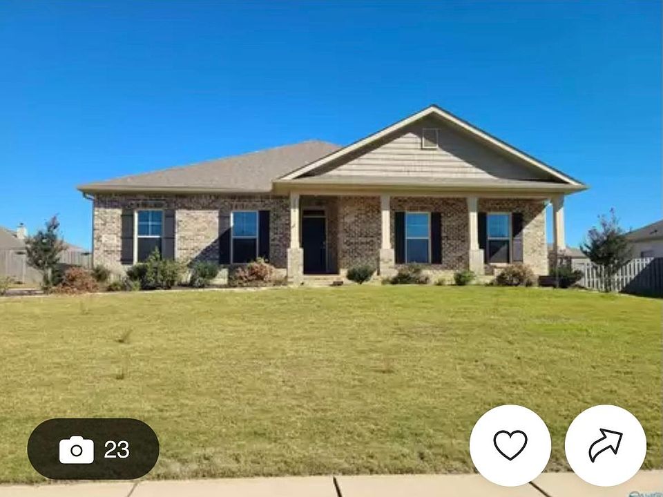 Beautiful single story family home in Turner Farm area. Built in 2020. Laminate flooring in common areas. Carpet in bedrooms. Master bathroom suite w/jacuzzi tub and large walk-in closet. Kitchen comes with stainless steel refrigerator, dishwasher, range and large pantry. Open floor plan, perfect for entertaining - wood burning fireplace, central air/heat. Attached 2 car garage. Lot size 0.35 acre, plenty of room for a family. Top rated schools. Approximately 20 minutes from downtown Huntsville. Renter pays own utilities. Small pet negotiable. Must carry renters insurance. Non smoking rental.