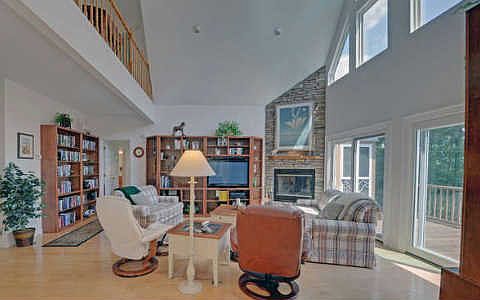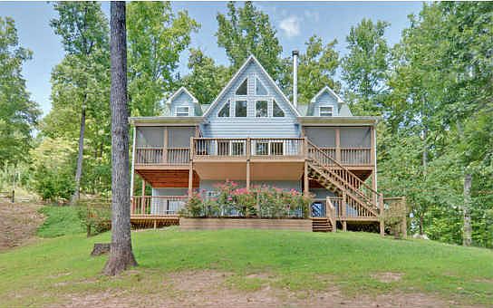 INCREDIBLE PRICE REDUCTION + BRAND NEW HVAC!!! Nestled in the trees with fabulous year round lake & mountain views from every room in the house! Being sold by the original owner, this home has been lightly lived in and beautifully maintained! Open plan with loads of light, cathedral ceilings, full height rock fireplace, large loft... the home works for casual or more formal living and on a part or fulltime basis! Foyer, separate dining area, granite kitchen with huge amounts of cabinet space and hardwood floors! Large master opens to the views, screened porches, open deck, additional sleeping, family room and workshop on the terrace level, again, fully decked! 2+ car garage! Repaved road! A GREAT neighborhood + low maintenance materials = Relax & Enjoy!