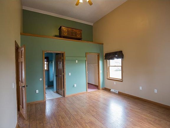 Bring the horses! Perfect setting just outside of town, 25 acres complete with a barn featuring a brand new roof! The home boasts 5 bedrooms including a Main Floor Master Suite, 3 bathrooms, open concept with plenty of space to spread out in the cavernous finished walk out basement. Large open Kitchen with heated tile floors! Huge back deck is the perfect place to enjoy the sunrise -- this home is a dream come true! OGM'S Convey!