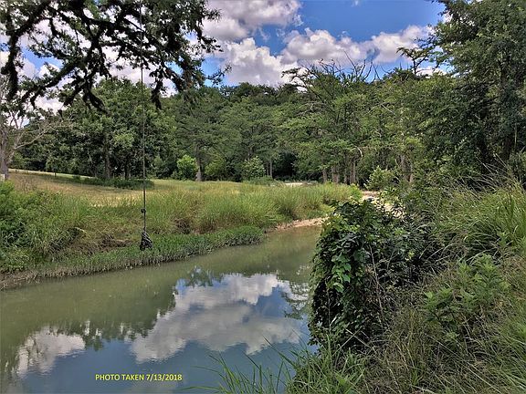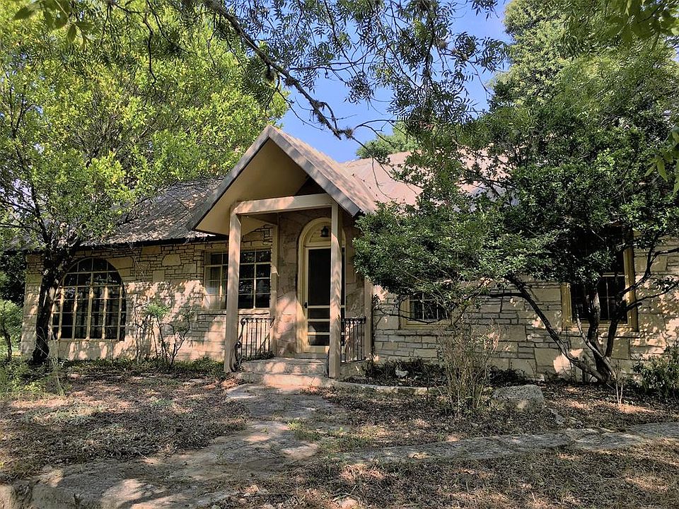 Hill Country mid-century style Rock home on 19.06 acres with over 1,000' frontage on Verde Creek! Fantastic mature pecan trees in bottom land with deep fertile soil - perfect for horses! The main house is native rock, has wonderful views and outdoor patios with great tree canopies. Central A/C and heat, double fireplace and also a wood burning stove in the kitchen! Two spacious bedrooms and two tile bathrooms. Also has a 1 bedroom guest house, two car garage plus a metal barn. Plenty of room on hilltop to build a new home that would overlook the bottom land, creek and adjacent valley. All measurements, taxes, age, financial and school data are approximate. Portion of property is within flood plain.