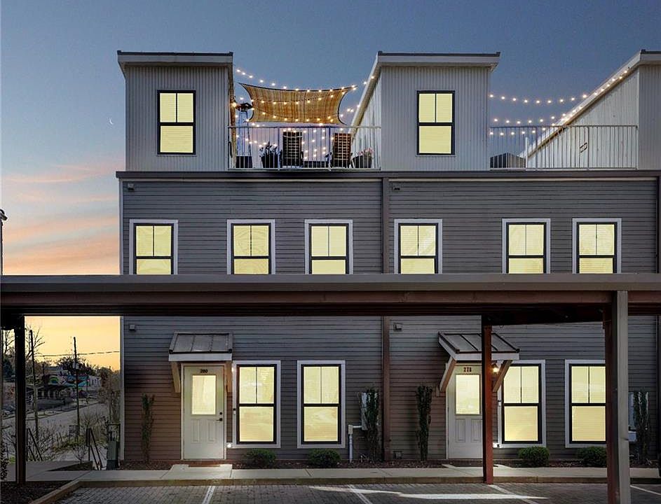 Light Filled End Unit Townhouse! Custom built in 2019 with today's buyer in mind - The main level front door leads to a modern open concept kitchen & dining area with luxury finishes, waterfall countertops and sizeable pantry. The Kitchen opens up to the living room with skyline views and balcony looking over Estoria st. lower, terrace level with both interior and exterior entrances has one bedroom/flex space, full bathroom and storage area. Head upstairs to the bedroom level - both with en suite full baths. Upper level with rooftop deck- it's always sunny with a rooftop deck like this! Grill, chill and be peacefully still or party under the stars with this private deck and full skyline view of the city. Gated parking with two covered, deeded spots opposite the front door and the Beltline just down the street make city living a breeze. This beautiful townhouse is perfectly situated off to the side and above Memorial drive. Choose to be Quiet and peaceful or throw a rooftop party with your friends- this home has what you are looking for. Boutique 29 unit Complex amenities include clubhouse & state of the art gym facility. Be part of the Memorial Corridor action-- A vibrant, newly developed area with direct Beltline access. Shopping, Award Winning Restaurants, Publix, Music Venue "The Eastern" and so, so much more. Easy access to the highways, but you may never want to leave your new townhouse.