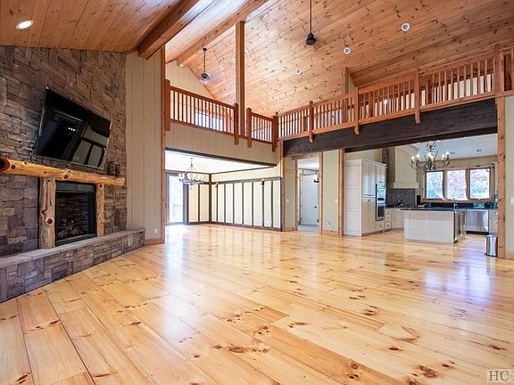 Beautiful wood and stonework abound.in this quintessential mountain estate. It offers lots of living space for family and guests and touches of modern flair. The main level features a large kitchen with granite counter tops, a great room with stone fireplace and open overhead walkways leading to the loft, which can be used as a den or office area. The upstairs great room can be used as a game or entertainment room. The master suite has beautiful ceilings and a slate tile bath with a huge walk-in closet. One additional bedroom on the main level is also a master and also has access to the wrap-around deck. The dining area with the trey ceiling and high wood trim accents the kitchen cabinets, beautiful counter tops and stainless appliances. The lower level is light and bright with wood accents. The den has a stone fireplace and a walk out patio of stone. The additional bedrooms and an additional bath makes this a private get away space. To top it all off.....This home has smart house technology with remote automated cameras, door, lighting and climate controls.