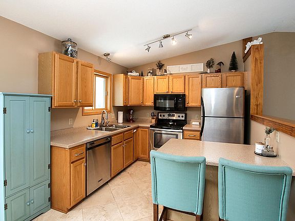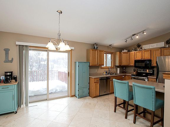 3 bedroom, 2 bath, split foyer home with an open floor plan, vaulted ceilings, oak cabinets, SS appliances and reverse osmosis system. Master bedroom with a walk-thru master bath and walk-in closet. Lower level features a spacious walkout family room with knotty pine walls and a dry bar. Keystone retaining wall and lot backs up to a pond. Backyard has a chain link fence. Crushed asphalt pad for camper or extra toys. America's Preferred Home Warranty included.