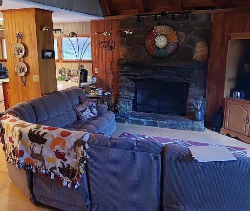 The bungalow of your dreams. Affordable home features vaulted ceilings with tongue and groove wood. Large master bedroom, cozy living room with large stone fireplace. Huge loft area for guest overlooking downstairs. Basement area has a large bedroom, closet, storage and bath. The work has been done with new roof and decks. Relax by a cozy stream tucked away only 25 minutes from Bryson City. Peace and quite can be yours. New roof. New deck.
