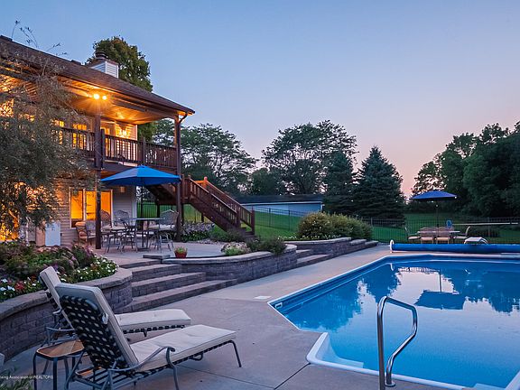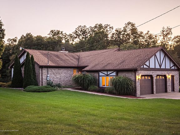 Fantastic property in the country! This one-owner, custom-built home sits on 2 acres in a heavily-wooded area near Branson Bay Golf Course. Over 3,000 finished square feet in this meticulously maintained property with 3 bedrooms and 3 full bathrooms. First floor master suite. The large family room boasts a wood-burning fireplace and walkout to the upper level deck with a view of the pool and back yard. The fully-finished lower-level has a rec room with a three-way fireplace, pool table and walkout to the patio and beautiful in-ground pool. Basement is stubbed for a full kitchen. Multiple outdoor entertainment areas. 2+ car garage is finished. New water heater in 2016, new furnace and central air in 2015 and new roof in 2009. The 30' x 40' pole barn will hold all your toys. Mason schools.