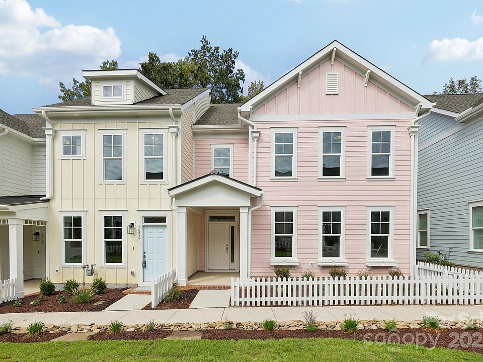End unit charm meets unbeatable location, just a half mile to downtown Huntersville with a direct Greenway connection! This stylish new construction Pinot floor plan offers 2,088 sq. ft. and two covered porches, one in front and a spacious 8x14 side porch, perfect for relaxing outdoors. Inside, enjoy 9' ceilings on both levels, hardwoods in main living areas, and elegant oak tread stairs. The open kitchen stuns with a wall oven, built-in microwave, massive island, pantry, and tons of cabinet space. Upstairs, retreat to the oversized primary suite with sitting area, dual walk-in closets, and tiled shower with bench. Two more bedrooms and a full bath plus a spacious laundry room with optional sink and cabinets complete the upper level. Downstairs includes a rear-load 2-car garage, drop zone, and upgraded finishes throughout. Don’t wait, only 2 homes remaining, schedule your walk-through and enjoy the perks of end unit living at Walk23!