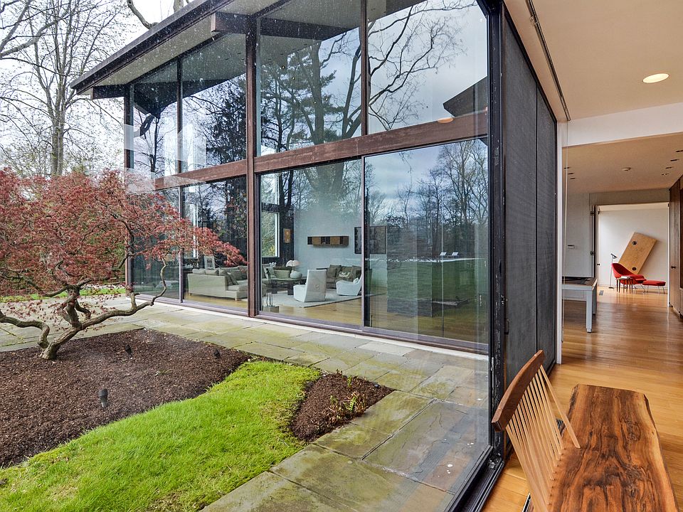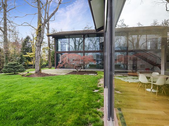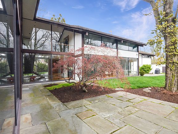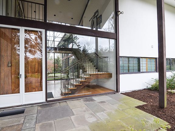This simply stunning Mid-Century modern home is a work of art. Built in 1965 and designed by George Nemeny, an award-winning NYC architect known as a pioneer of contemporary architecture in America. The design of the home evokes a feeling of light and space with its floor to ceiling wall of windows and 45-foot high cathedral ceiling. Clear views of specimen plantings, big sky and nature are enjoyed from practically every room. There are seamless transitions and extensions of living space from indoors to outdoors with sliding walls of glass. The simple clean lines, use of appropriate materials and structural integrity of the home are without comparison and true to the Mid-Century building philosophy. Privately tucked away on nearly 2-acres, enjoy long summer days by the pool, dining on the blue stone patio or simply watching the magnificent sunset. Located in the heart of Rye and close to all major transportation routes, beach, schools, town and Metro-North train station.