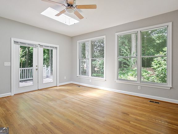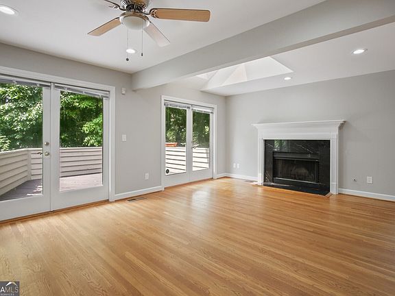 Modern and cool townhouse with three finished levels and separate spaces for everything you need! Located in a quiet cul-de-sac but convenient to Sandy Springs Center, 400/2-85, Perimeter Mall, or Pill Hill! Finished lower level with travertine tile floors, screened porch, full bath, 2 car garage, and unfinished storage area. Second level features primary suite with walk in closet, extra bonus room off primary, and travertine tiled bathroom. Hardwoods through-out & multiple skylights for extra natural light. Open kitchen with white cabinets, granite, and SS Appliances. Two decks overlook secluded, wooded lot. Third level is complete with two bedrooms and updated full bathroom. 1 pet case by case with deposit. Landscaping is a separate expense. Washer/Dryer included! Copyright Georgia MLS. All rights reserved. Information is deemed reliable but not guaranteed.