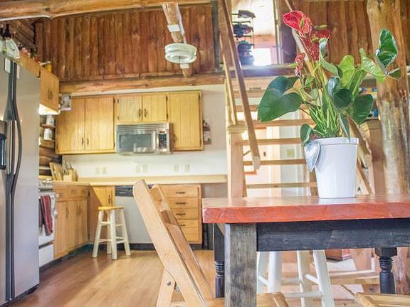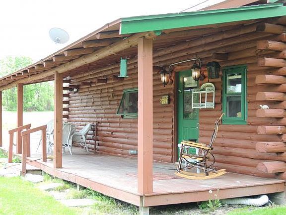 Cozy 2 bedroom log cabin on 2.4 level acres in Trumansburg schools. Newly painted exterior & interior for a clean fresh look. County style front porch w/ overhang. Cathedral ceilings, exposed beams, open flr plan, & main lvl bdrm. Upper bdrm, w/ new carpet, was previously a loft style, but recently closed off to create privacy. New; windows, aluminum siding, hot water tank, pellet stove, & sidewalk. Large detached garage/workshop w/ commercial exhaust fan. 10 minutes from hospital and 15 minutes to village of Trumansburg and downtown Ithaca. Chicken coop conveys.