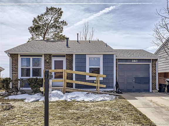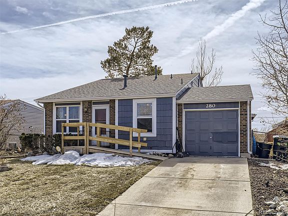 Welcome Home!! This 2 bedroom 2 bathroom Tri Level home in Bennett is affordable and in a great location! Upon entry, the main level offers the kitchen, dining area and living room with tall vaulted ceilings, that make the area feel spacious and bright. The upstairs hosts the full bath and two bright and open bedrooms. Downstairs there is an additional living space that you can make into a second living room, office or flex space or easily add a 3rd bedroom. The laundry room and second bathroom are also downstairs. The home has a private backyard that backs to open space and a walking trail. This home offers new wood laminate flooring, newer carpet, new exterior paint, a new roof, new solar panels, new front and rear sprinkler systems, leaf guard gutters, a new electrical box and the furnace, central air and windows are newer as well (2017). Come and enjoy this quiet neighborhood with no HOA and make this your new home!