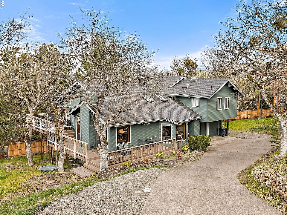 Attractive East Medford home in established neighborhood! Vaulted, multi-level floor plan. Attractive hardwood flooring. Wood floors re-finished in 2015/2016 plus new carpeting in 2015/2016. Gas fireplace and built-in shelves in living room. Wood beam accent in family room. Large picture windows throughout. Kitchen offers granite counters, eating bar, desk, smooth cooktop range/oven and skylights.
