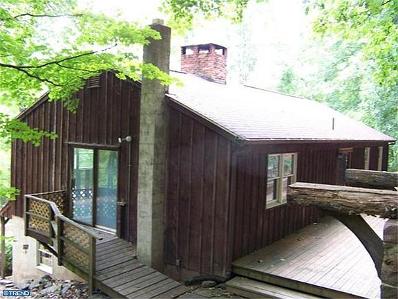 Just shy of 5 acres in desirable Tinicum Township, this property includes a raised ranch-style home and a newly-contructed barn with an over-sized 2-car garage/shop on the lower level (including a 10,000 lb car lift) and a sunny office/studio above, with Heating/AC, oak hardwood floors, and vaulted ceilings. In the main house, the upper level features high ceilings and rustic construction throughout, with wood beams, trim, hardwood floors and butcher-block countertops in the kitchen. The spacious living room with wood-burning fireplace has windows on three sides, providing beautiful year-round views of the surrounding woodland. In the dining area, sliding glass doors lead to the back deck with a built-in stone fireplace for outdoor entertaining. Down the hall are the principal bedroom with a walk-in closet, a guest bedroom, and a full bath with shower/tub and double vanity. The lower entry level features a flexible 'bonus' room with a large walk-in closet, perfect for an extra living space, a home office, studio or exercise room. Also off the entry hall are a half bath, a large closet, a 'Harry Potter room' under the stairs, and a laundry room, along with access to the large one-car garage with plenty of space for extra storage. A solar array on the barn roof (fully-owned and included) keeps electric bills to a minimum, easily powering the entire property and two charging stations for electric cars. Extremely private and serene, this mostly wooded property is a nature-lover's dream, teeming with songbirds and wildlife, with a sloping hill behind the house that leads to a flat plateau at the top. (The hike up is significant, but the stunning views are well worth the effort!) Easy commute to Philadelphia or New York City. Just minutes to numerous parks, including the Delaware Canal Path with its miles of trails for hiking and biking, and easy access to all the fine restaurants, shops, and art galleries that can be found in the villages along the Delaware River. 2021-12-16