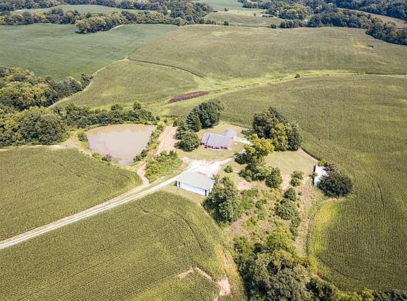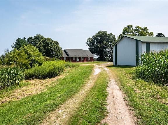 OUT, BUT NOT FAR OUT! Adjacent from Grand View Acres subdivision is 64.49 acres & this ALL BRICK Ranch home built in 2002. The home consists of 2,820 sq. ft. offering 3 bedrooms, 2.5 baths, massive open foyer, living room & dining room w/built in glass shelves. Open eat-in kitchen features oak cabinetry, crown molding, kitchen island w/side book shelf, granite counter-top, SS appliances & French doors leading out to small wood deck. Master bedroom includes walk-in closet, along w/another one in the Master bath, walk-in shower & make-up vanity. Home features solid 6 panel doors w/lever handles throughout, 15x10 main floor laundry & storage shelves. Office area & ???? bath w/large sink adjacent from the 2 car garage. Full basement just waiting for your finishing touches! Secluded 10x19 enclosed sunroom in the rear of the home for evening enjoyment. A 36 x 65 outbuilding w/3 14x14 bay doors, electric & gravel flooring. tenants right apply. Call today for details