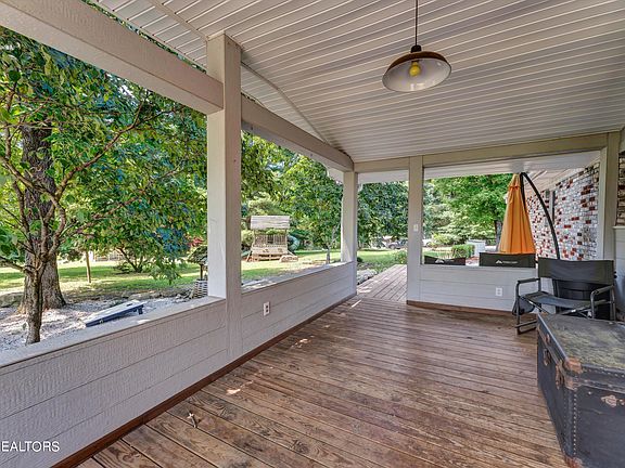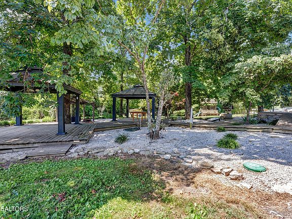 Welcome to Serenity! 5 gorgeous, peaceful acres to enjoy with endless possibilities, minutes from Norris Lake. Perfect property for a mini farm & garden, with chicken coops, workshop/garage and multiple storage sheds. There's even a small cabin/chalet/craft shed that conveys! The home is move-in-ready with 3 bedrooms (2 have their own ensuite) and guest bath on the main level, 4th flex/bonus room with half bath on the lower level that was used as an in-law suite complete with a living space and area plumbed for a kitchenette. Separate den/office on lower level as well. Roof 5 years old with 30yr shingles, updated windows and glider doors. Hickory hardwoods, covered porch on front and screened porch on back with gazebos for picnics or entertaining. Wood burning stove hooked up to duct work for backup heat, tv and all appliances convey. Ride over to Bubba Brews for a waterfront dinner or pull your boat just 2 miles and enjoy all gorgeous Norris Lake has to offer! This property is being sold as-is, priced with no repair negotiations, but inspections are welcome. Don't miss seeing it!