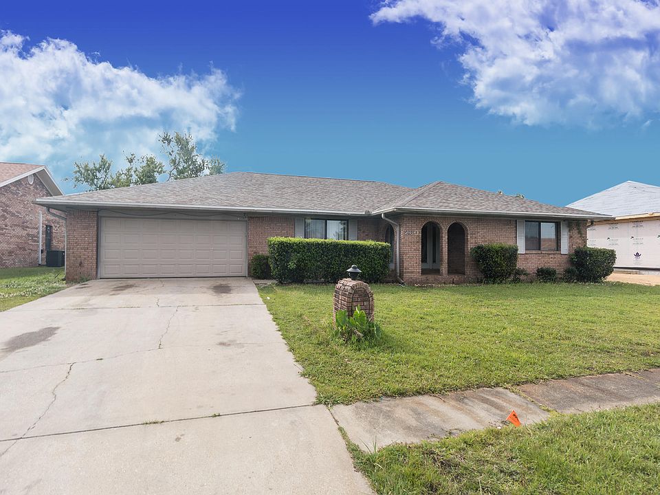 Classic, solid, traditional, all brick home in a great neighborhood. Over 2,500 sq ft to include a spacious living room, with adjoining den and separate dining room, perfect for the more formal gatherings, or large families. Brick fireplace and exposed beams on the vaulted ceilings, give a semi-rustic appearance. HUGE 21x14 private master, split bedroom plan, ideal for company, or families. FOUR bedrooms, great sized yard, double garage, growing established neighborhood. New roof in 2019!
