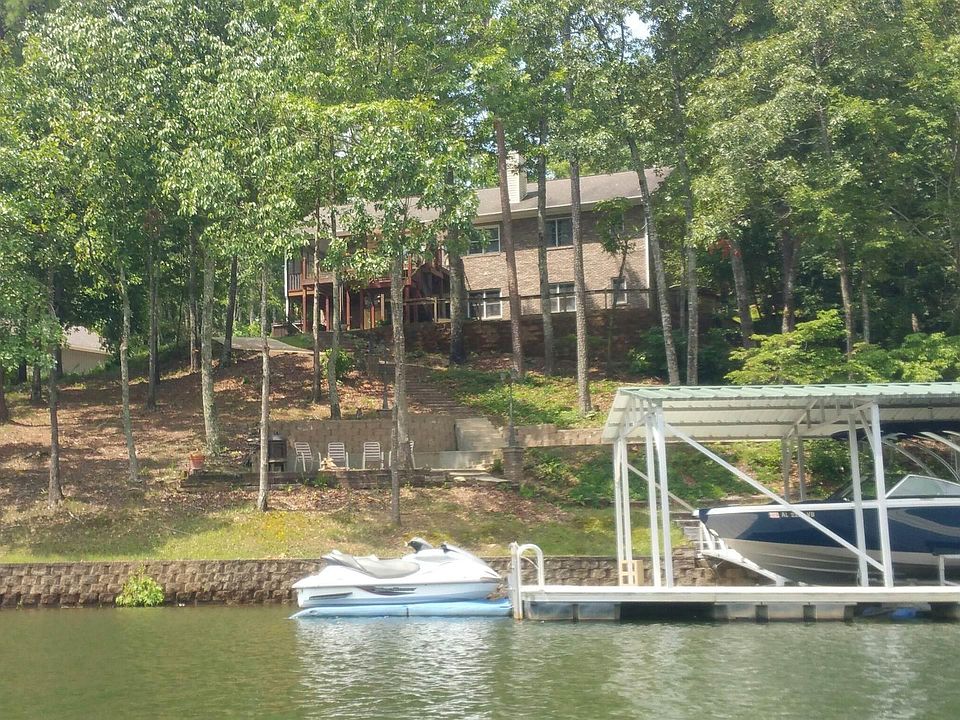 REDUCED!!! Lovely lake home located on the Big Tallapoosa River on Lake Wedowee! 173 ft of shoreline with deep, year round water! Approximately 3,000 SF of living space. The main floor has 3 bedrooms, 2.5 bathrooms, open-concept kitchen, dining, french doors that open to a large screen porch and den that has a beautiful stone fireplace for cooler evenings. Downstairs is a great open space for entertaining. There are two bedrooms, a full bathroom, custom-built wet bar and an unfinished area for storage. The HVAC and roof are less than 3 years old. Newly rebuilt decking and stairs to the water. There is also a lit paved pathway to the aluminum dock with two jet ski ports. The 30' length garage is perfect for onsite boat storage The jacuzzi will remain.