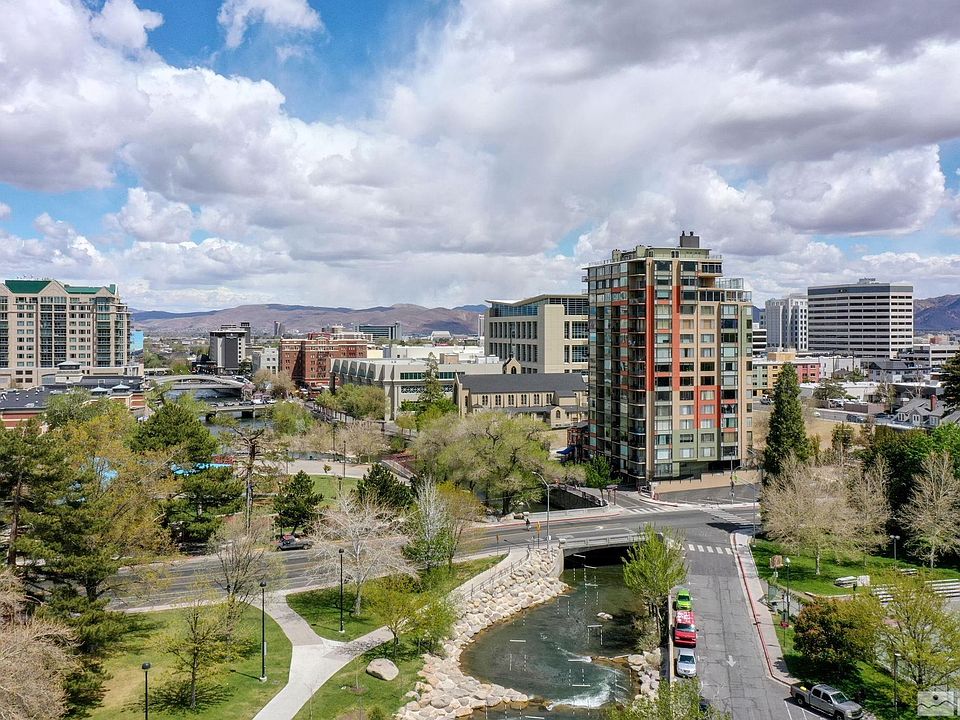 Welcome to the epitome of downtown living in an iconic high rise building located in a walker's paradise (walk score 98 )with breathtaking panoramic views. This corner unit offers a unique vantage point, showcasing the spectacular Truckee River, vibrant cityscape, parks, bridges and majestic surrounding mountains. Private balcony, two main bedrooms en-suites, plus powder room with shower for guests. HOA covers heating, cooling, water, sewer, trash, exterior maintenance and on-site management., Residents enjoy24 hour secure access, use of a conference room, roof top viewing deck & laundry facilities. Long term parking available nearby for approximately $50 per month. Short term rentals are currently allowed in the building. This beautiful unit can be available turn key and fully furnished.